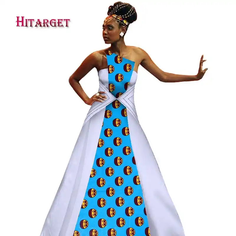 Bazin Riche African Dresses For Women Sweet Patchwork Dresses Vestidos Dashiki African Wax Print Wedding Dresses Clothes Wy1696