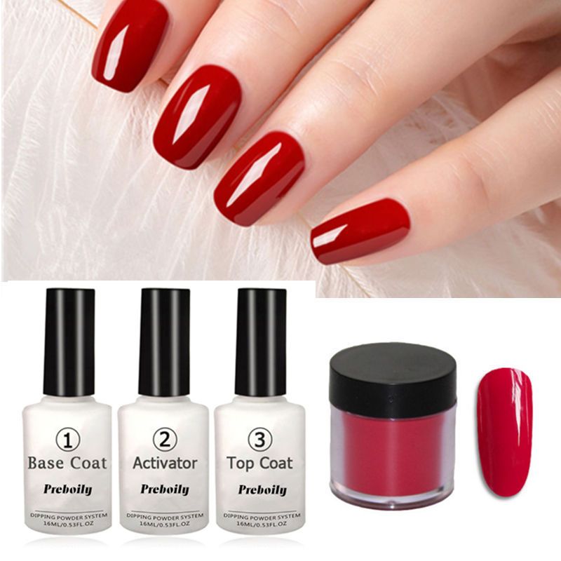 4 In 1 10g Box Hot Red Dipping Powder Kit No Lamp Cure Nails Dip