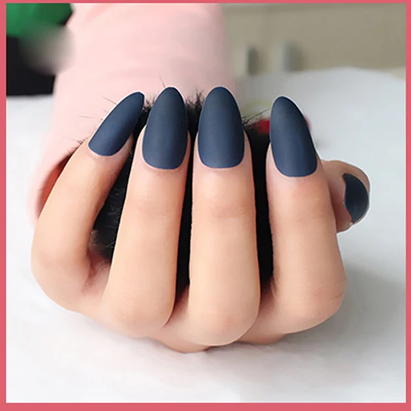 24pcs Set Matte Almond Style False Nails Sharp Ending Ink Blue