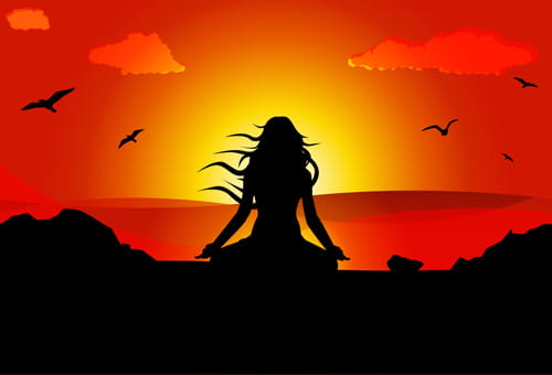 Yoga Pose Silhouetter With Sunset Background Vector 01 Eps