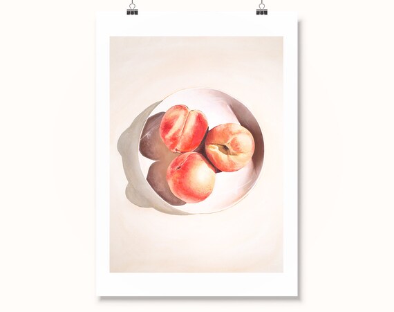 Fruit Still Life Print Watercolor Peaches Painting Pink Aesthetic Minimal Modern Gift For Her Vegan Art